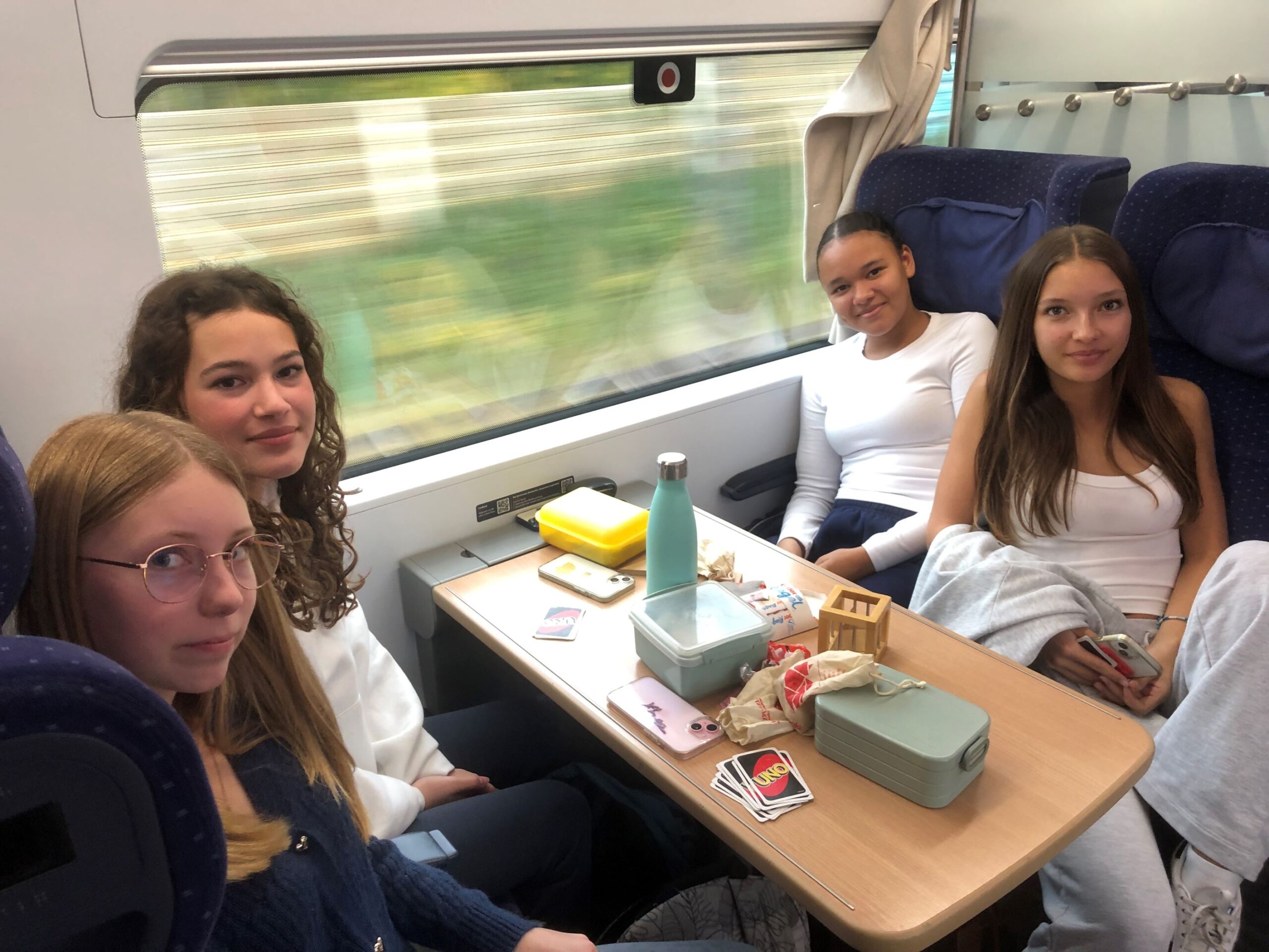 Nach einer Bahnfahrt, auf der jeder Zug pünktlich war (!), kamen wir abends in Niederbronn les Bains an. Die SchülerInnen aus Straßburg haben uns vom Bahnhof abgeholt und wir konnten auf dem Weg zur Herberge den Ort entdecken. Es gibt viele schöne alte Häuser mit Zeichnungen auf der Fassade in Niederbronn. Danach haben wir gemeinsam Flammkuchen gegessen und uns kennengelernt…