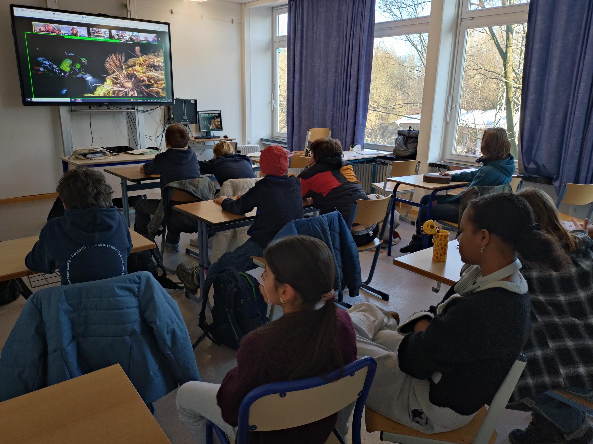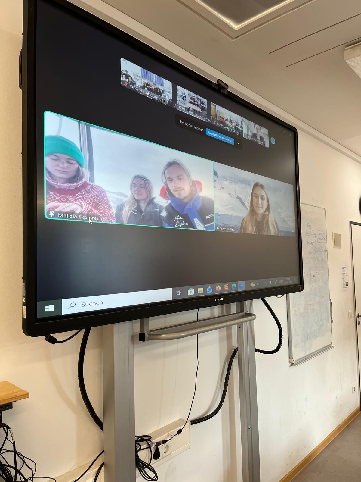 Im Rahmen einer Live-Schaltung in die Antarktis lernten die Schüler:innen der 7. Klasse und der Klasse 5B das Leben der Forscher an Bord der „Malizia Explorer“ und der „Why“, dem Segelschiff des wissenschaftlichen Forschungsprogramms Under The Pole, kennen.