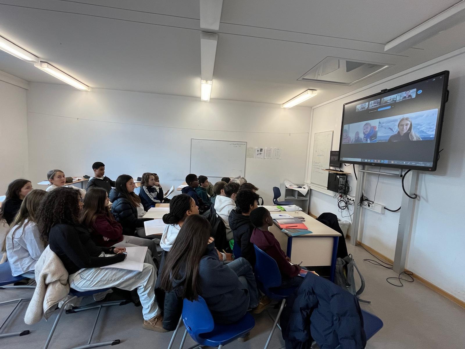 Zusammen mit anderen Schüler:innen aus ganz Europa wurden sie für die entscheidende Rolle des Antarktischen Ozeans für das Klimagleichgewicht sensibilisiert und konnten den Referenten Fragen stellen – für alle eine eindrucksvolle Begegnung!