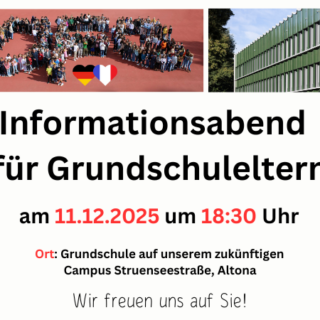Sie haben Interesse (Gründe für das DFG) am Deutsch-Französischen Gymnasium und überlegen, Ihr Kind im Schuljahr 2026-27 bei uns einzuschulen? Hier die wichtigsten Infos: Anmeldung Die Anmeldung für den neuen fünften Jahrgang ist bis Anfang...